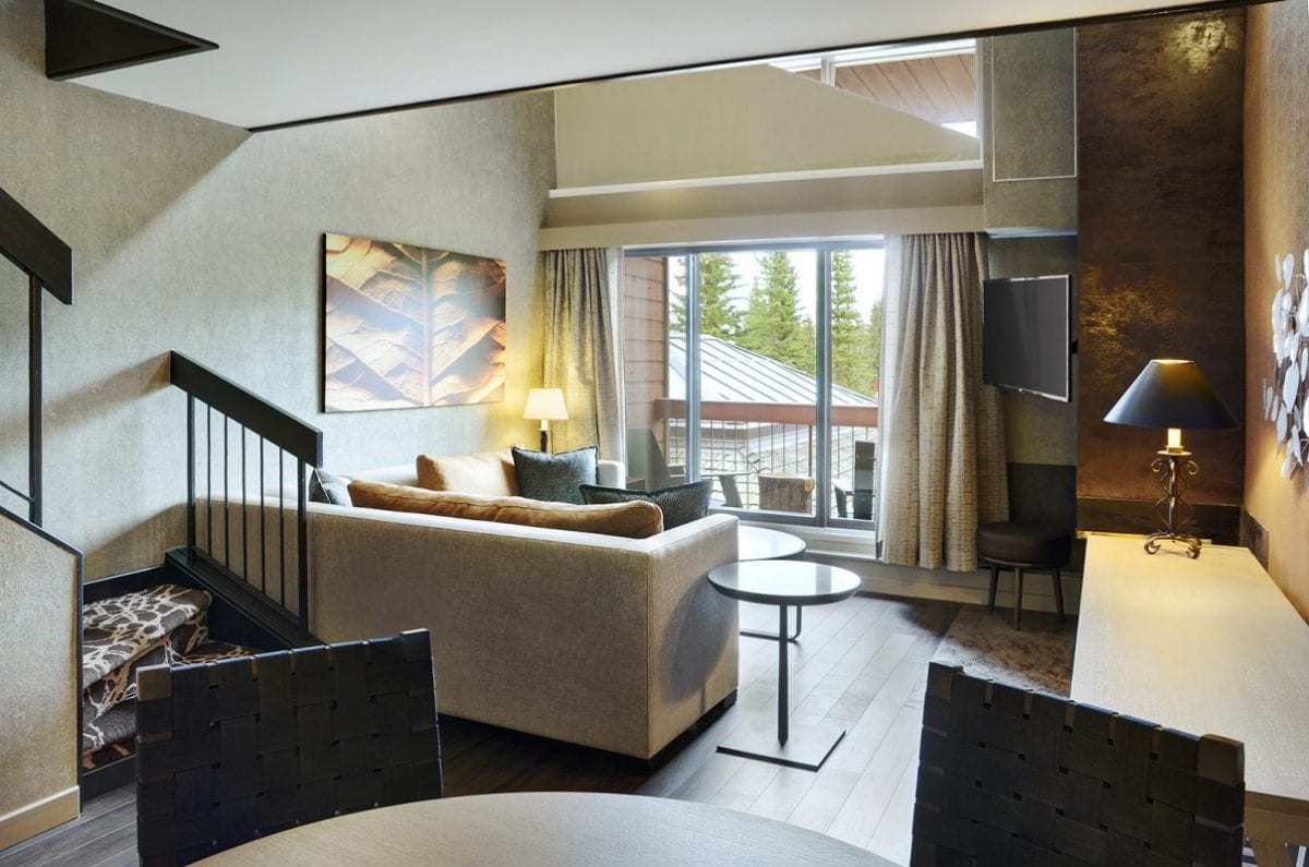 Upon arrival at the Lodge, we were greeted by a friendly staff that helped us with our gear and settle into our room. We were booked into the Bi-Level Loft with 2 Queen Beds which was both modern and spacious. This bi-level loft includes two queen beds and bathroom on the upper level and separate downstairs living space with sofa bed, dining area, bathroom, and fireplace. The private balcony allows you to take in the awe-inspiring mountain views.